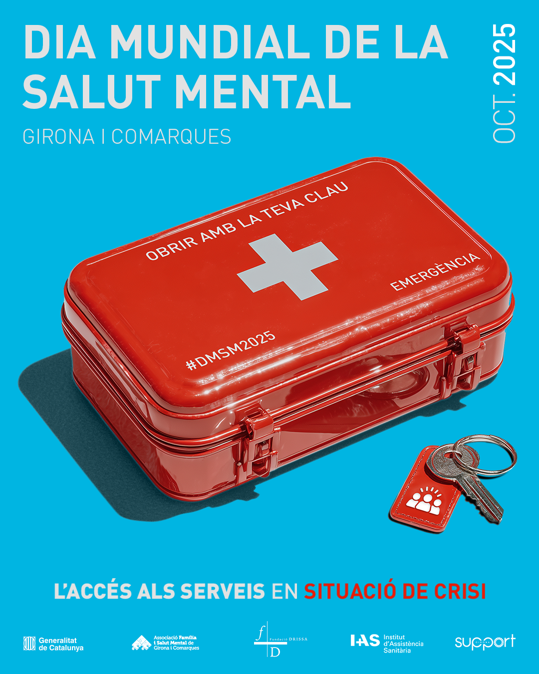Més de cinquanta actes i activitats programades a les comarques gironines amb motiu del Dia Mundial de la Salut MentalDimarts, 30 Setembre 2025La commemoració del Dia Mundial de la Salut Mental arriba aquest octubre a les comarques gironines amb una programació que supera el mig centenar d’activitats. El lema d’enguany, “L’accés als serveis en situació de crisi”, posa l’accent en la necessitat de garantir una atenció accessible, propera i flexible davant de les crisis que poden viure les persones amb un trastorn mental, tant des de la perspectiva sanitària com social. Enguany es compleix una dècada —del 2015 al 2025— de la col·laboració conjunta entre l’Institut d’Assistència Sanitària (IAS), l’Associació Família i Salut Mental de Girona i Comarques, la Fundació Drissa i Support-Girona |