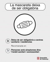 Els departaments de Salut i de Drets Socials i Inclusió han decidit no prorrogar l’obligatorietat de l’ús de la mascareta en centres i serveis sanitaris, així com en residències de gent gran i centres per a persones amb discapacitat. Per tant, la mascareta deixa de ser obligatòria a partir d’avui 7 de gener per la baixada en la incidència de les infeccions respiratòries.