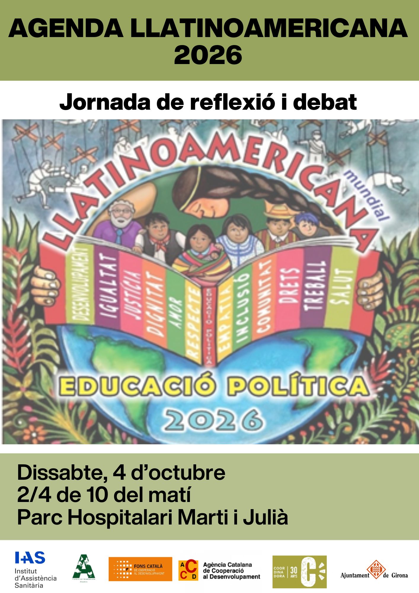 Jornada de reflexió i debat sobre l'Agenda Llatinoamericana 2026Dimarts, 5 Agost 2025La jornada tindrà lloc el dissabte 4 d'octubre al Parc Hospitalari Martí i Julià L'Agenda Llatinoamericana Mundial 2026 és una publicació anual de caràcter sociopolític, cultural i espiritual, elaborada des de l'Amèrica Llatina amb una mirada crítica i compromesa amb la justícia social. Aquesta agenda no és només un calendari, sinó una eina de reflexió i formació que cada any proposa un tema central relacionat amb les lluites dels pobles oprimits, la defensa dels drets humans, la sostenibilitat ambiental i la construcció d’un altre món possible. L’edició del 2026 continuarà aquesta trajectòria, oferint textos d’autors i autores de diverses parts del món, especialment del Sud Global, amb l’objectiu de sensibilitzar, informar i mobilitzar persones i col·lectius compromesos amb la transformació social i la solidaritat internacional. |