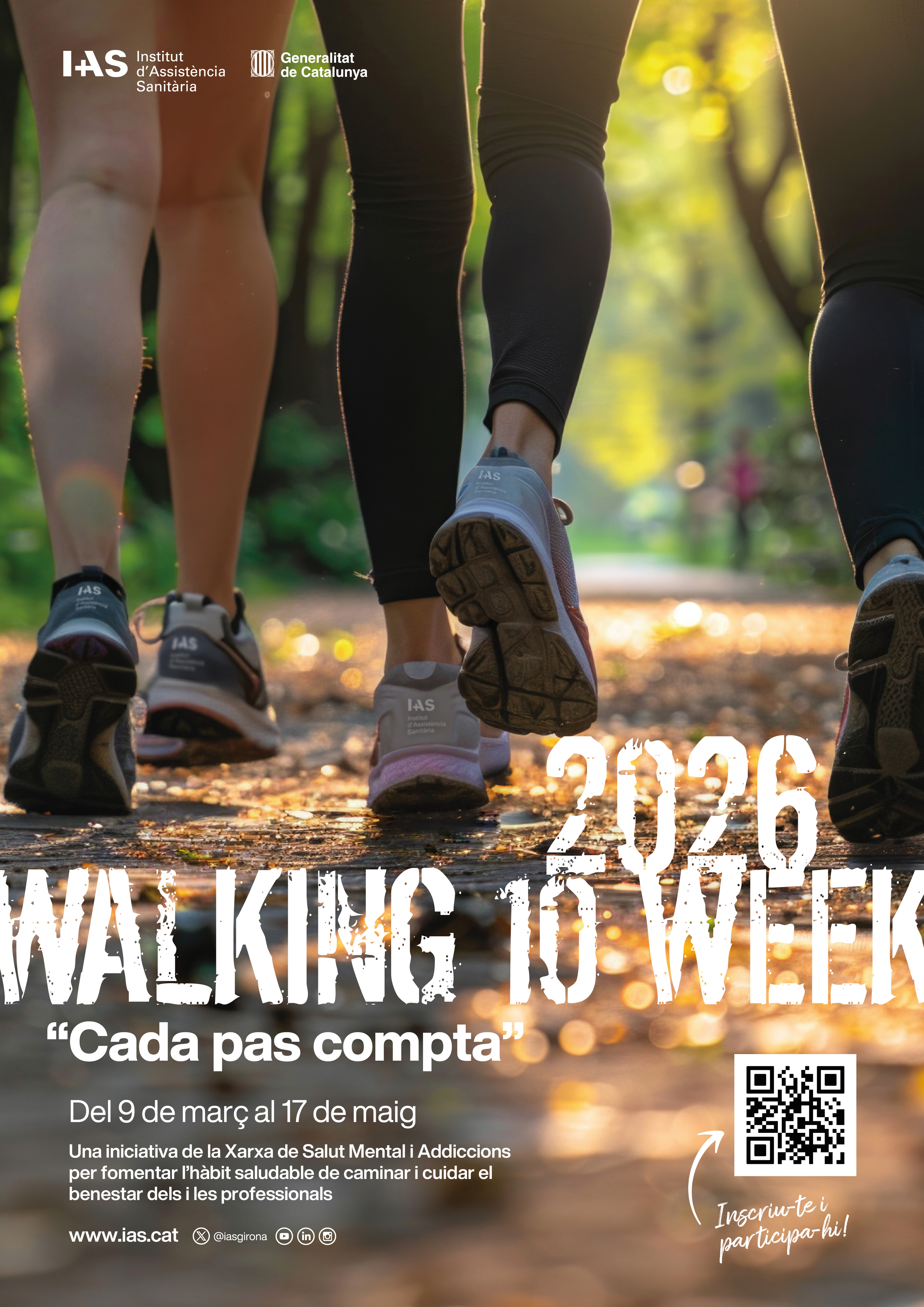 Nova edició de la Walking 10 Week a la Xarxa de Salut Mental i AddiccionsDijous, 26 Febrer 2026Després de l’èxit de les edicions anteriors, el projecte WALKING WEEK, iniciat a la Xarxa de Salut Mental del Baix Empordà, fa un pas més aquest any i s’amplia a tota la xarxa de salut mental del territori. Amb l’objectiu de fomentar l’hàbit de caminar i millorar el benestar físic i emocional dels i les professionals, la iniciativa es desplegarà del 9 de març al 10 de maig, amb un repte de 10 setmanes per incorporar l’activitat física al dia a dia laboral i personal.