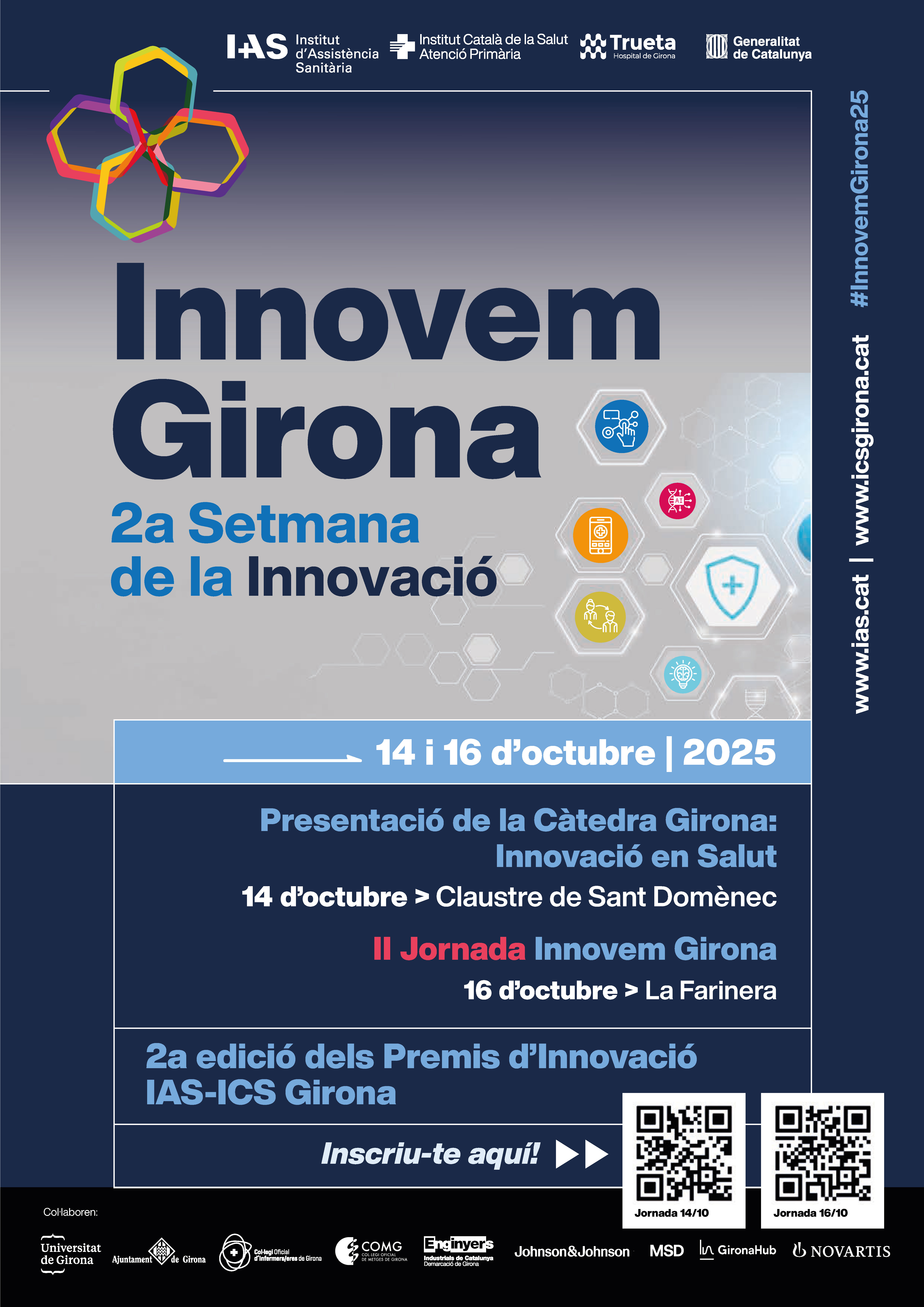 Arriba la 2a Setmana de la Innovació IAS-ICS GironaDivendres, 12 Setembre 2025L’Institut d’Assistència Sanitària (IAS) i l’Institut Català de la Salut (ICS) Girona organitzen la 2a Setmana de la Innovació, una cita que vol esdevenir un punt de trobada on les idees es transformin en projectes i els projectes en futur. Aquesta segona edició reunirà experts de referència, institucions i empreses amb l’objectiu de compartir coneixement i posar en valor les iniciatives que impulsen la innovació com a eix estratègic i motor de transformació del sistema de salut. |